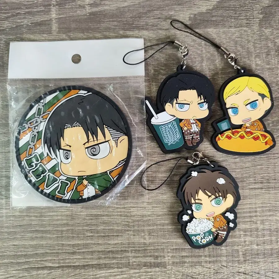 영화 진격의 거인 러버 스트랩 키링 코스터 리바이 엘르빈 엘렌 총 4종 세트 잘 부탁드립니다 ^_^ 키워드 진격의 거인 엘렌 예거 미카사 아커만 아르민 아르레르트 리바이