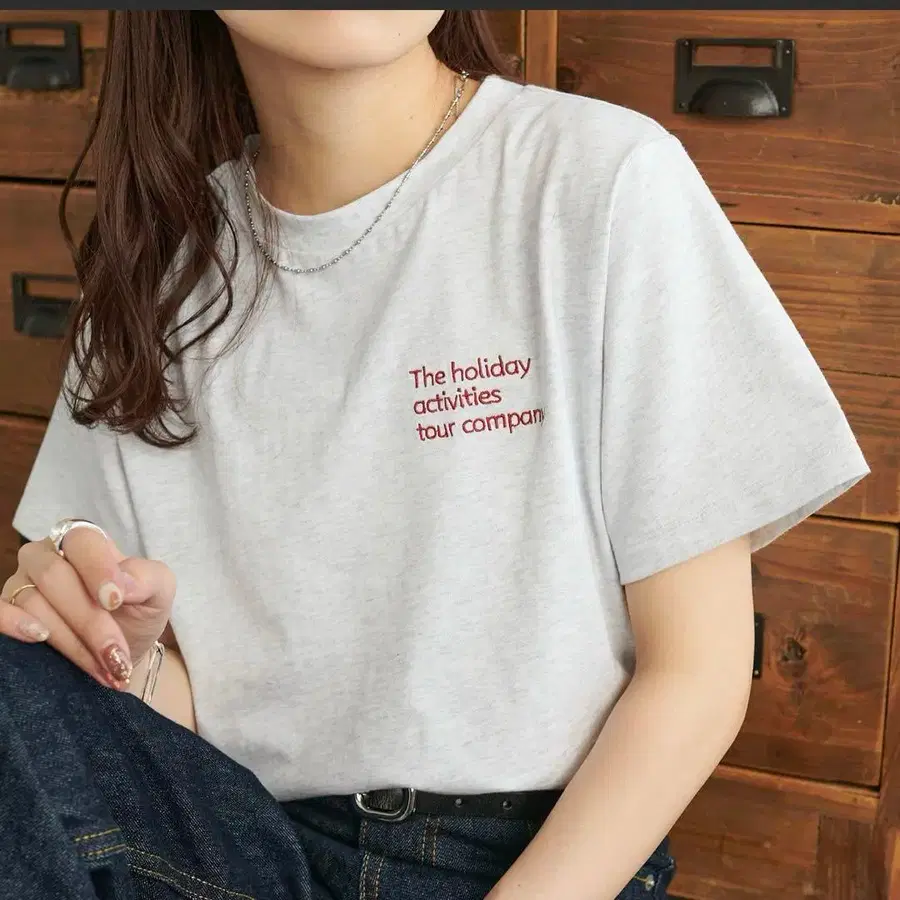 [드리] 일본제 원포인트 자수 반팔 상의 터콰이즈 블루