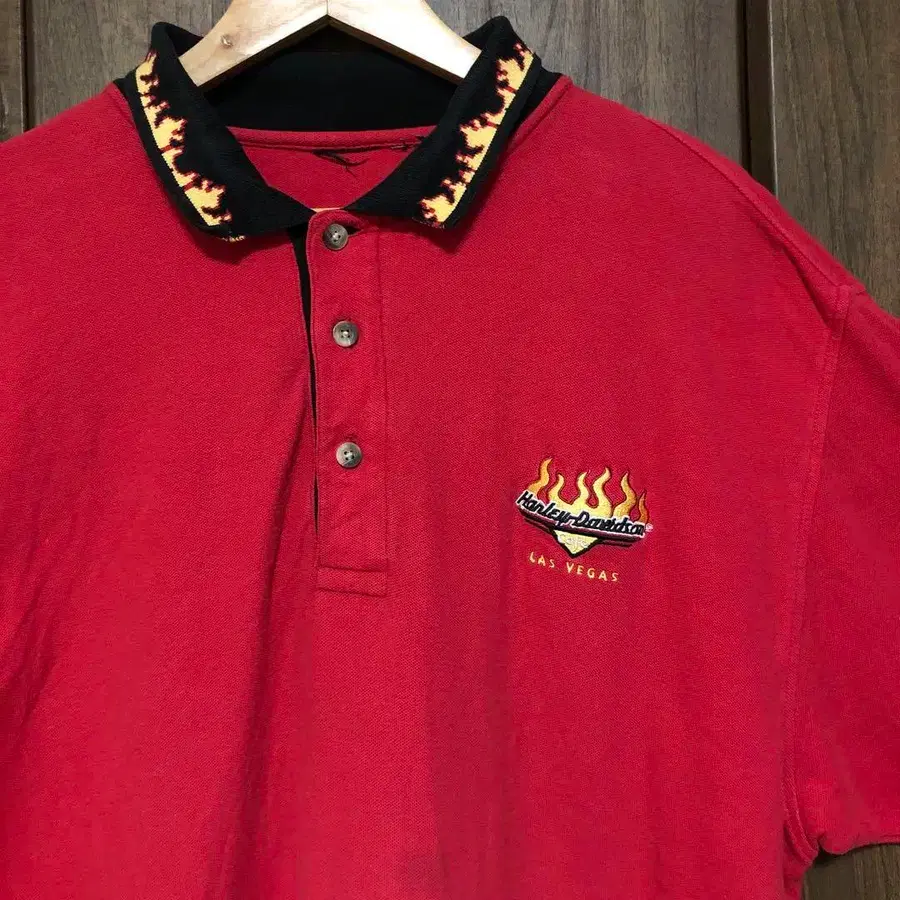 Harley davidson 파이어 패턴 피케 셔츠 XL 빨간색