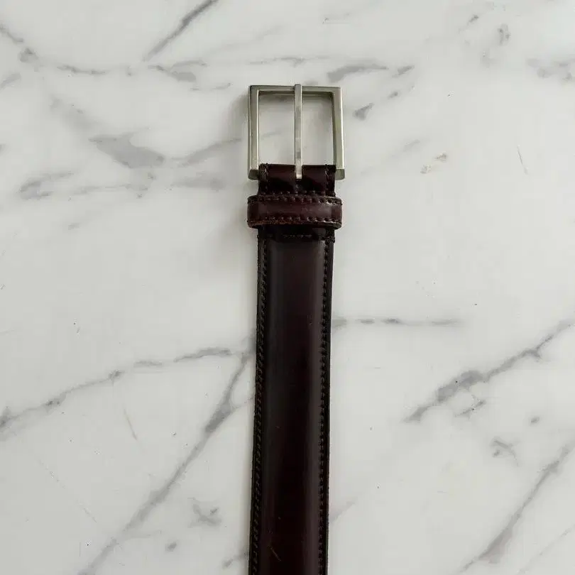 다크 브라운 가죽으로 제작된 심플한 디자인의 더블 버클 벨트입니다.