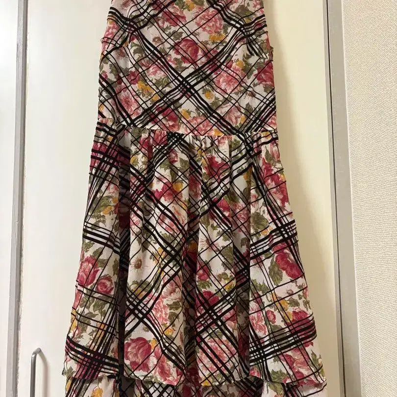 밑단이 2단으로 되어 있고, 시크한 꽃무늬에 검은색 라인이 아주 귀여워요.