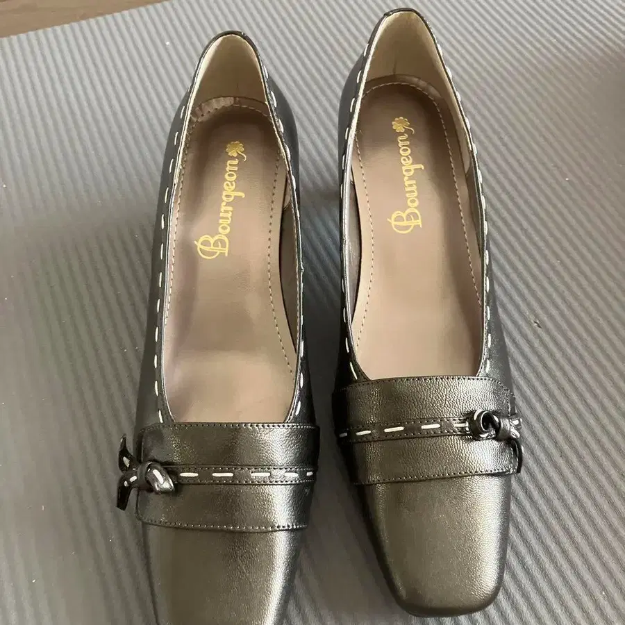 다크 그레이 스퀘어토 펌프스, 리본이 포함된 엘레강트한 디자인. - 브랜드: Bourgeon - 색상: 다크 그레이 - 디자인: 스퀘어토 - 힐 높이: 약 5cm - 장식: 리본 포함 상자는 다른 신발 상자로 보내드립니다. 현재 상태가 우선입니다. 다른 신발도 판매하고 있으니 꼭 한번 보세요.