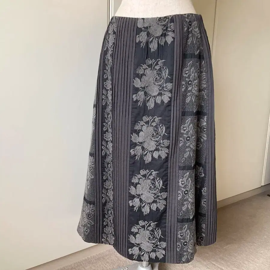 길이 ~70cm 허리 ~72cm 블랙 베이스에 다크 그레이의 럭셔리한 꽃무늬 자수가 들어간 스커트입니다. 첫눈에 반해 구매했지만, 착용할 기회가 없었습니다. 옷장에 보관하고 있었습니다.