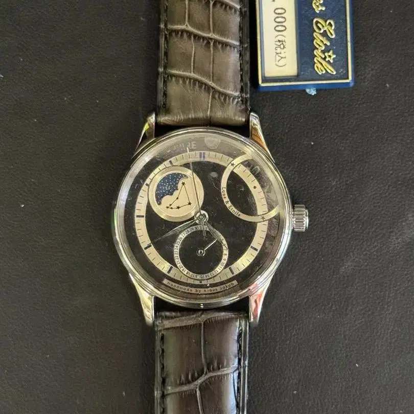 정품 제조사 보증서 유 JACQES ETOILE (자크 에투알) 루나 & 에투알 오토매틱 LUNE & E-BK 남성용 손목시계 정가 374,000 가격 인하 불가 2025년 9월부터 제조사 보증 있음 자동 와인딩 (ETA2824-2 베이스) 문페이즈 달력 (지침식 날짜) 스테인리스 스틸 케이스 사파이어 크리스탈 크로커다일 스트랩 5기압 방수 시스루 백 직경 38.5mm (크라운 제외)
