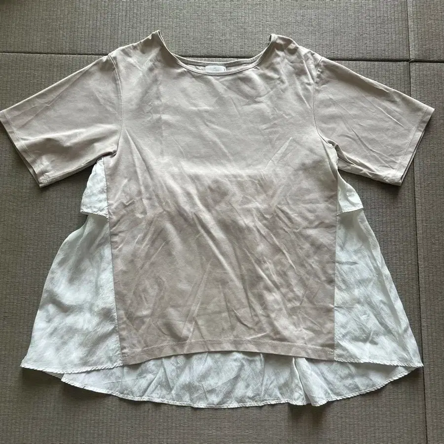 SONO 백 프릴 베이지 화이트 반팔 상의