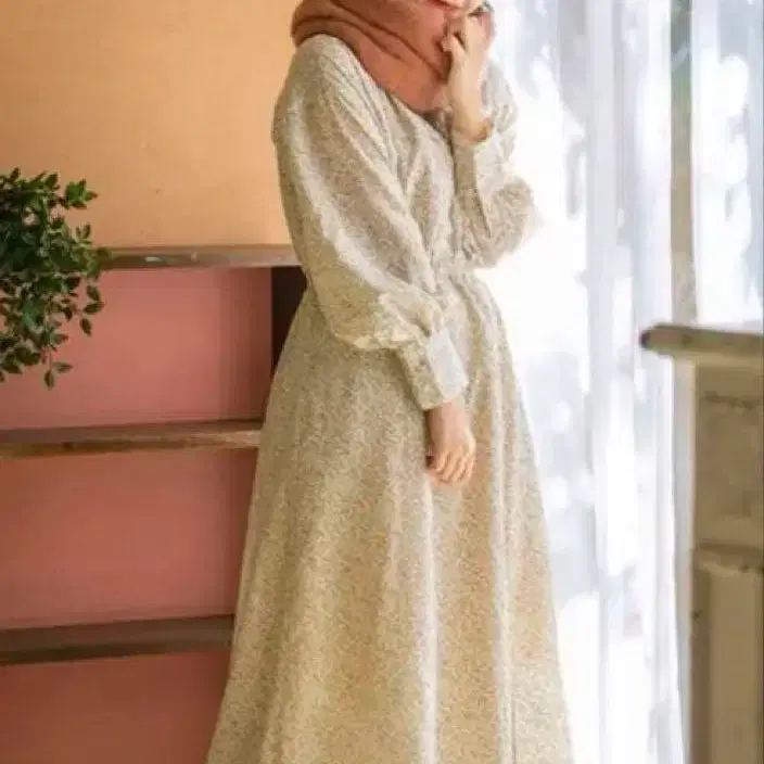 • 꽃무늬 긴팔 무릎 기장 원피스