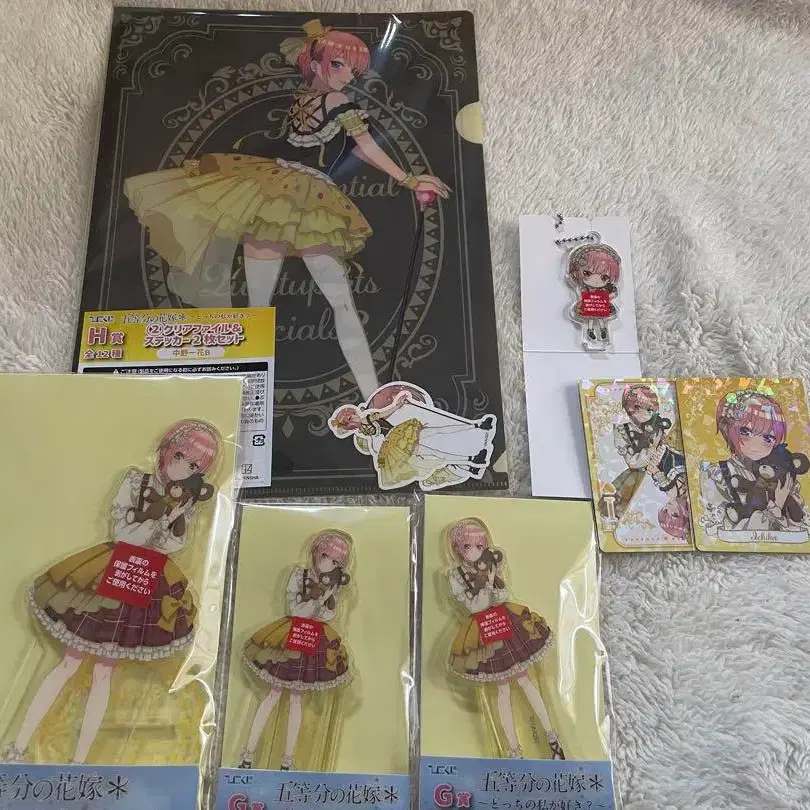 히코쿠지 5등분의 신부*~어느 쪽이 더 좋아? 나카노 이치카 F상 ① BIG 클리어 스탠드 ×1 G상 ① 클리어 스탠드 ×2 H상 ② 클리어 파일 & 스티커 ×1 I상 SD 클리어 키링 ×1 J상 홀로그램 & 클리어 카드 ×2 즉시 구매 가능⭕️ 합계 가격입니다.