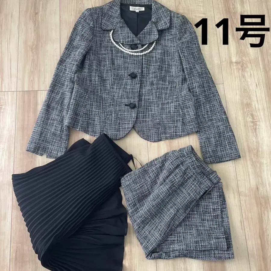레트로한 디자인의 여성용 정장 상하의입니다.