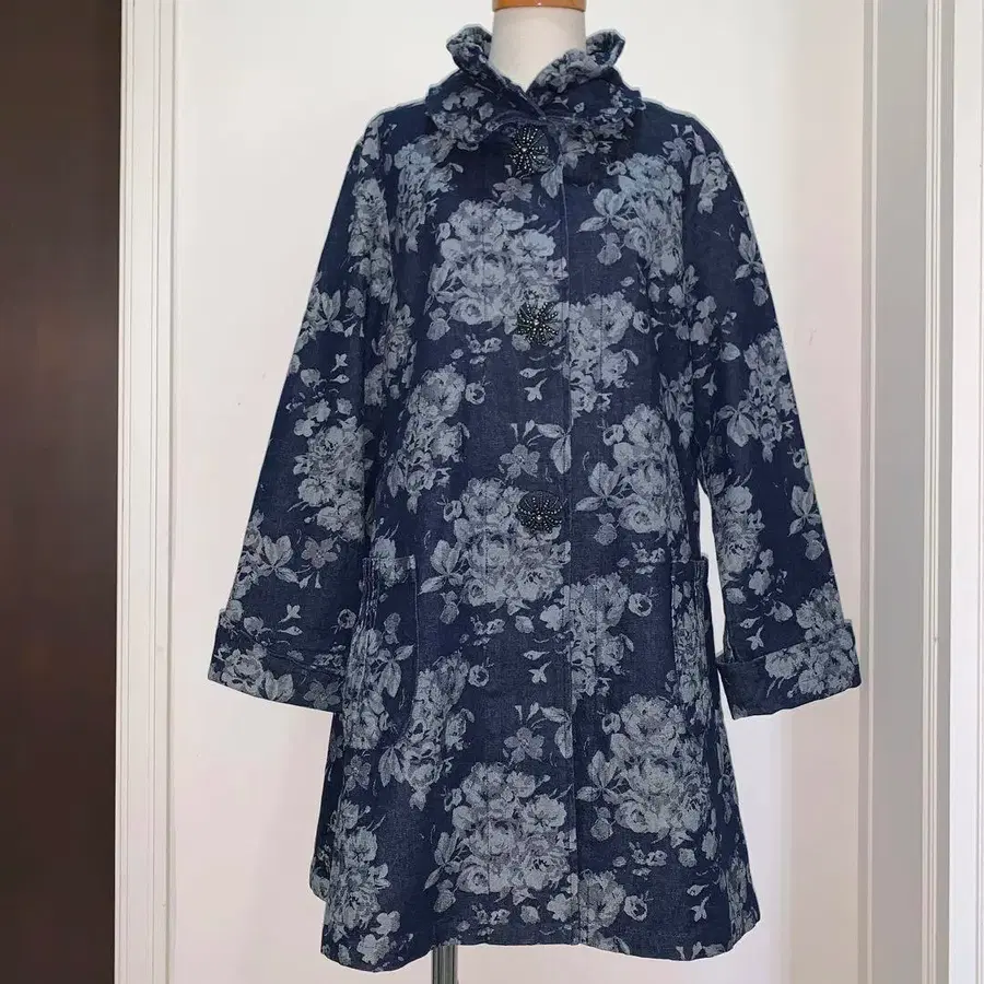 Via Faburrica 버튼이 귀여운 꽃무늬 데님 자켓 코트