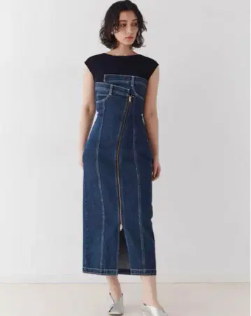 • 새상품급 [니코앤드] 인조 가죽 도킹 롱 원피스 A라인