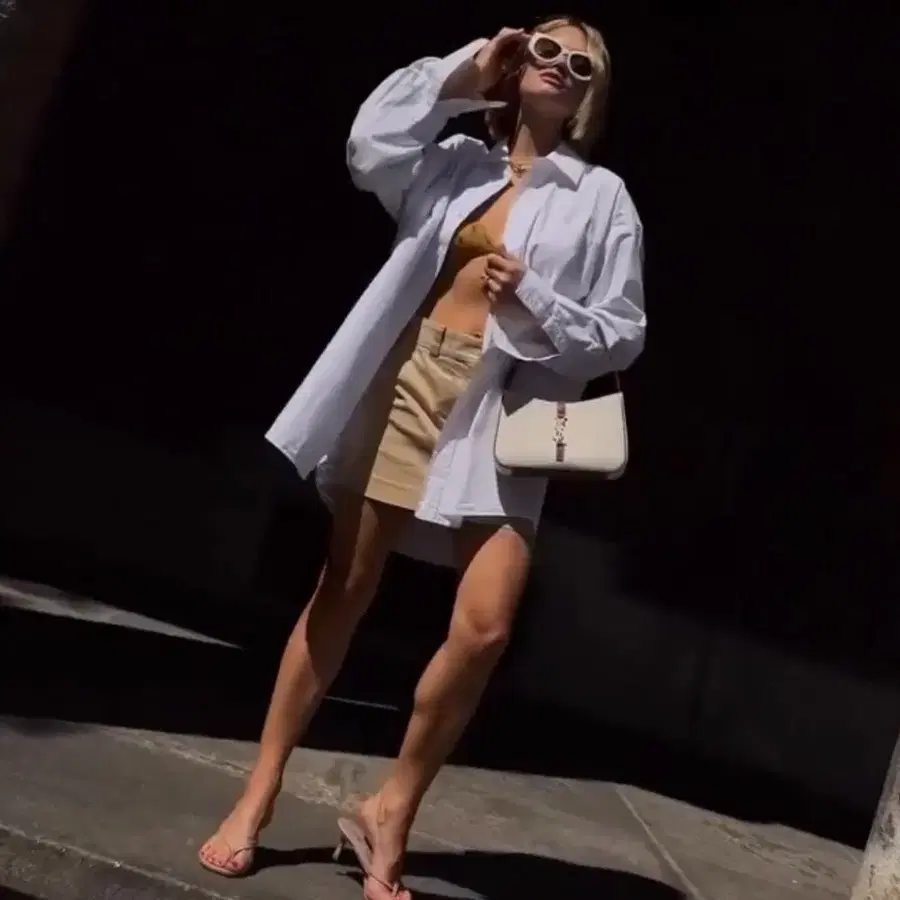 1~2년 전에 뉴욕 SOHO에 있는 the frankie shop에서 구매했습니다. 138달러(1.8~2만 엔)였습니다. 3번째 이후의 착용 사진은 168cm가 착용하고 있습니다. 벨트 부분이 2줄로 되어 있어 귀엽습니다!