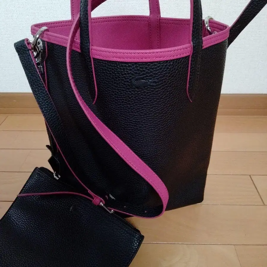 라코스테 블랙과 핑크 토트백