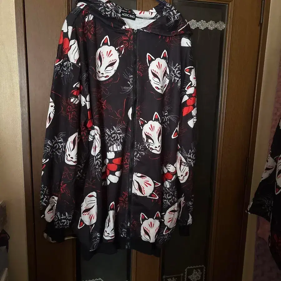 여우 얼굴과 꽃 무늬 프린트가 특징적인 후드 부착 집업 후드티. - 브랜드: ACDC RAG - 디자인: 여우 얼굴과 꽃 무늬 프린트 - 컬러: 블랙/레드/화이트 - 스타일: 후드 부착 집업 - 특징: 넉넉한 실루엣 방문해 주셔서 감사합니다. 어깨 너비/가슴 둘레/소매 길이/총길이 어깨 너비···70cm 가슴 너비···74cm 소매 길이···59cm 기장···81cm 평평하게 놓았을 때 치수 측정입니다♪ 얼룩, 찢김, 냄새 등···없음