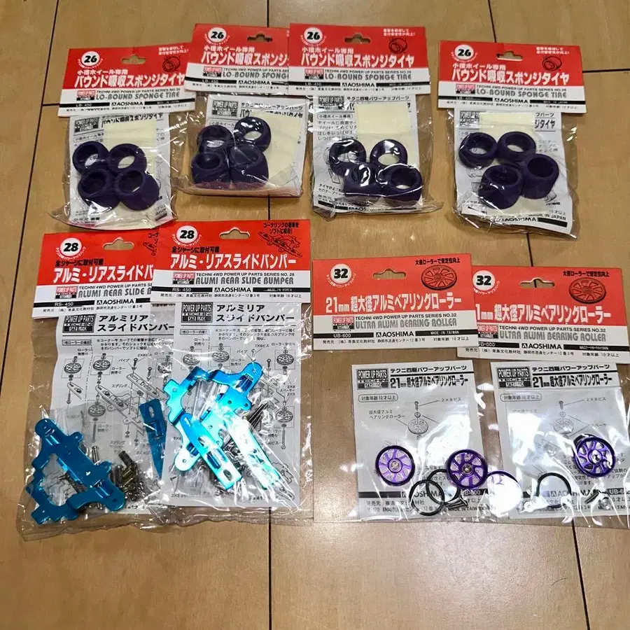 테크니 사륜구동 미니 사륜구동 아오시마 알루미늄 리어 슬라이드 범퍼 블루 21mm 초 대경 알루미늄 베어링 롤러 퍼플 소경 휠 전용 바운드 흡수 스펀지 타이어