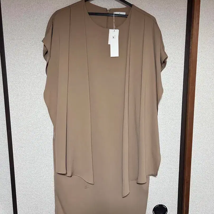 가벼운 베이지 원피스. 신경 쓰이는 팔뚝을 가리면서 엘레강트한 디자인으로 급한 경사, 결혼식, 2차 모임에 추천✨