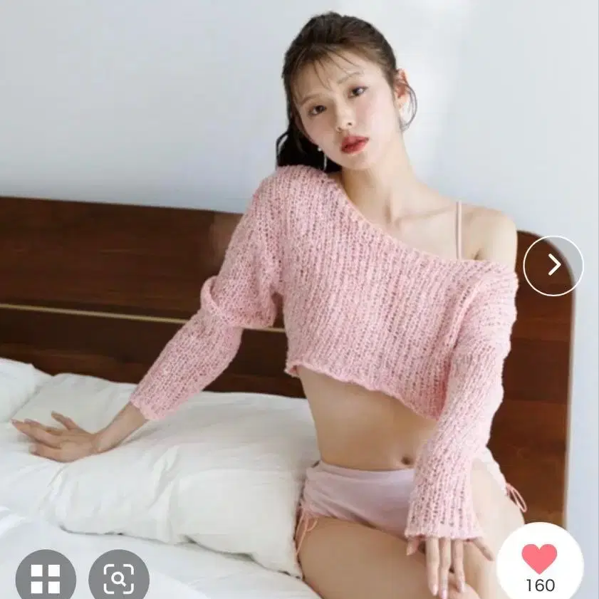 SNIDEL 시어스 러브 니트 탑 핑크 베이지