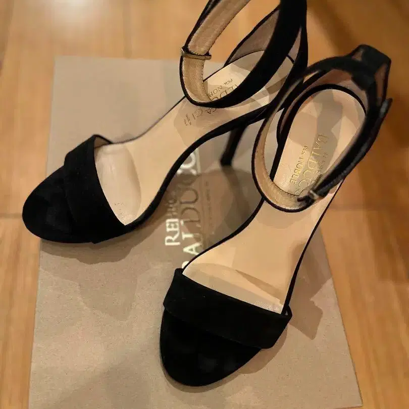 몇 년 전에 노블에서 구매한 이탈리아제 REBECCA BALDUCCI의 스웨이드 샌들입니다. 정가는 4만 엔이었습니다. 섬세하고 슬림한 힐로 발이 매우 예쁘게 보입니다. 사이즈는 22.5 힐 높이는 9cm 1회 착용 후 보관하고 있었습니다.