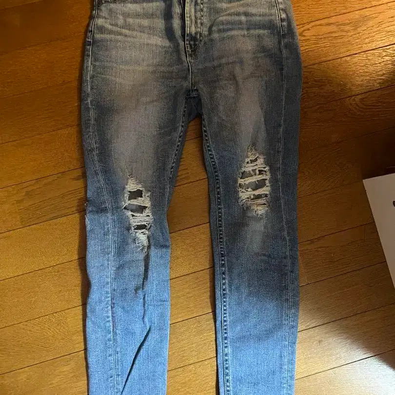 에이앤드엠 H&M 와이드 데님 팬츠 데미지 가공 블루 S 플레어