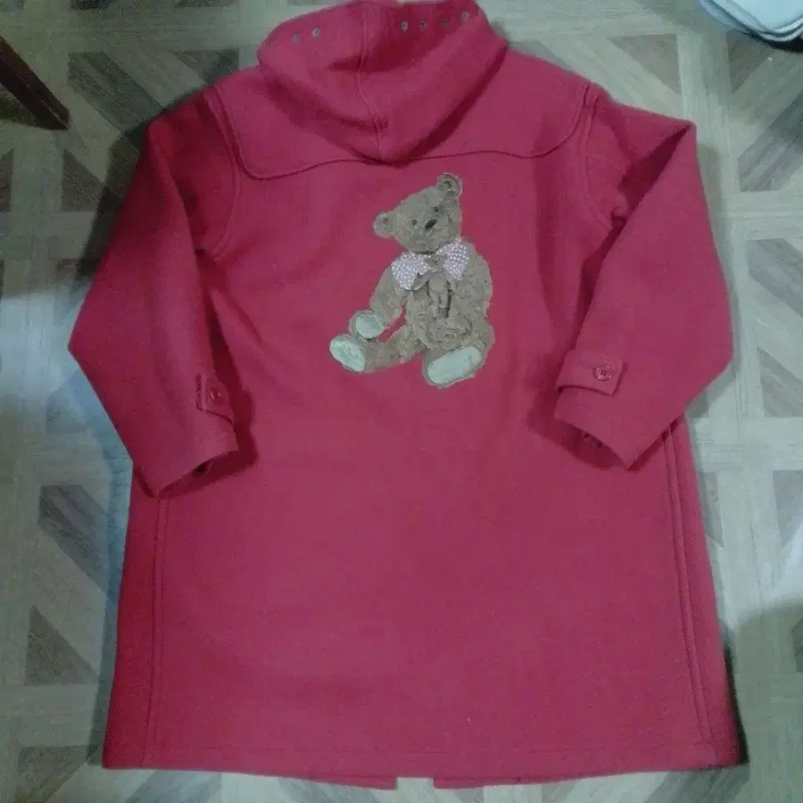 - 색상: 빨간색 - 디자인: 곰 자수 - 스타일: 더플 코트 어깨 너비 55, 기장 91, AH56, 소매 36, 몸통 너비 65cm 정도