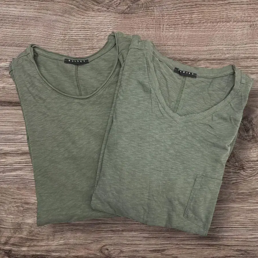26X 시슬리 Sisley 카키 티셔츠 포켓 부착 2장 세트 M