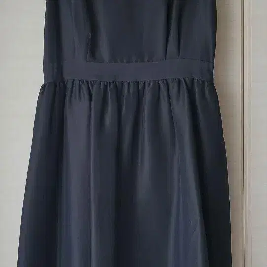 블랙 슬리브리스 V 넥 원피스, 플레어 실루엣으로 안쪽에 튤이 들어 있어 약간 부풀어 올라 엘레강트한 느낌.