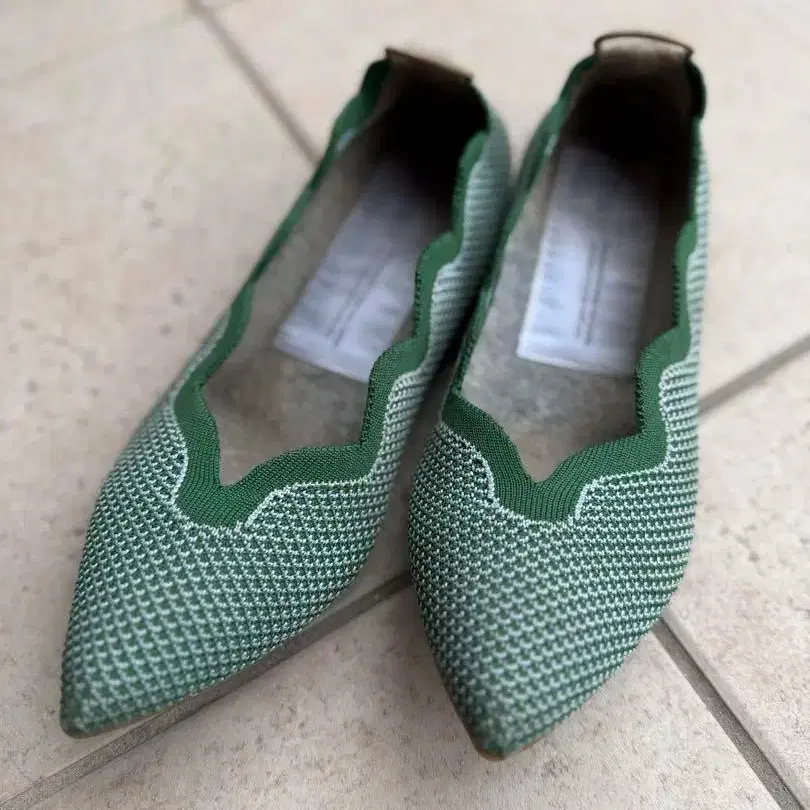 가격 인하 중 Offen 그린 스캘럽 엣지 플랫 슈즈 38