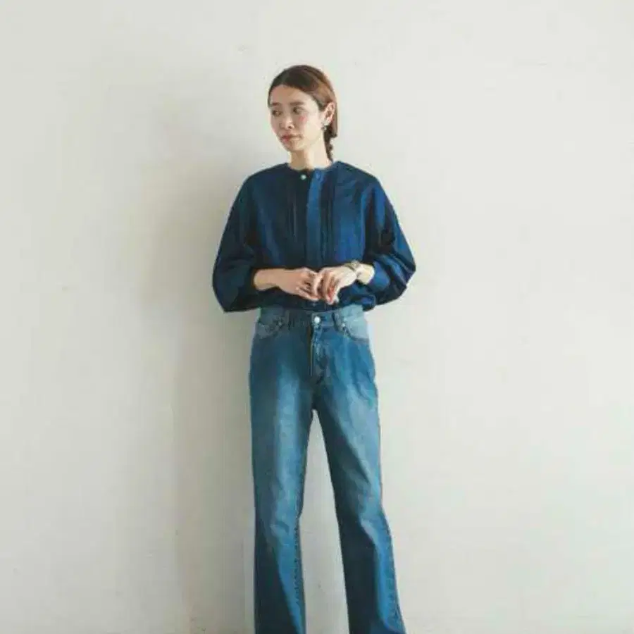 아이템】5oz 데님 소매 볼륨 소매 블라우스