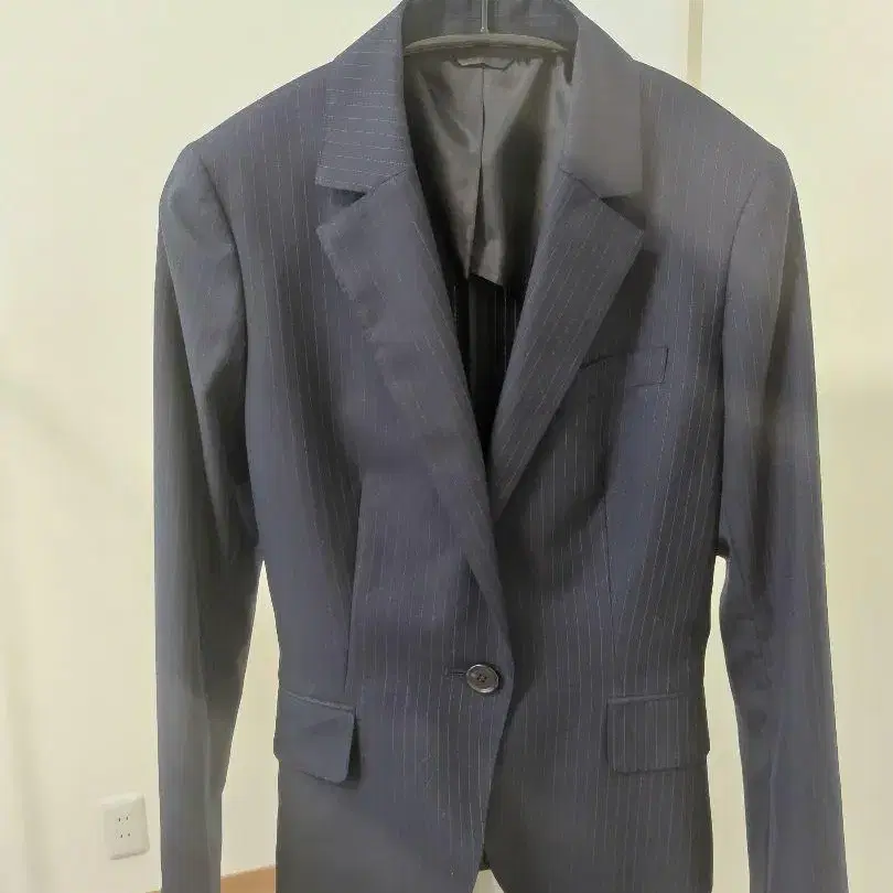 수트 셋업 네이비 싱글 센터 벤트 1B 팬츠 수트 등 스트라이프 스트레치