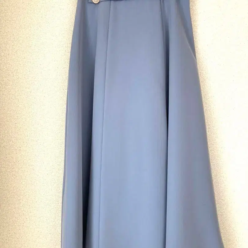 색상은 차분하고 깔끔한 하늘색으로 초봄부터 여름에 딱 맞습니다. 길이는 무릎 아래 정도입니다.