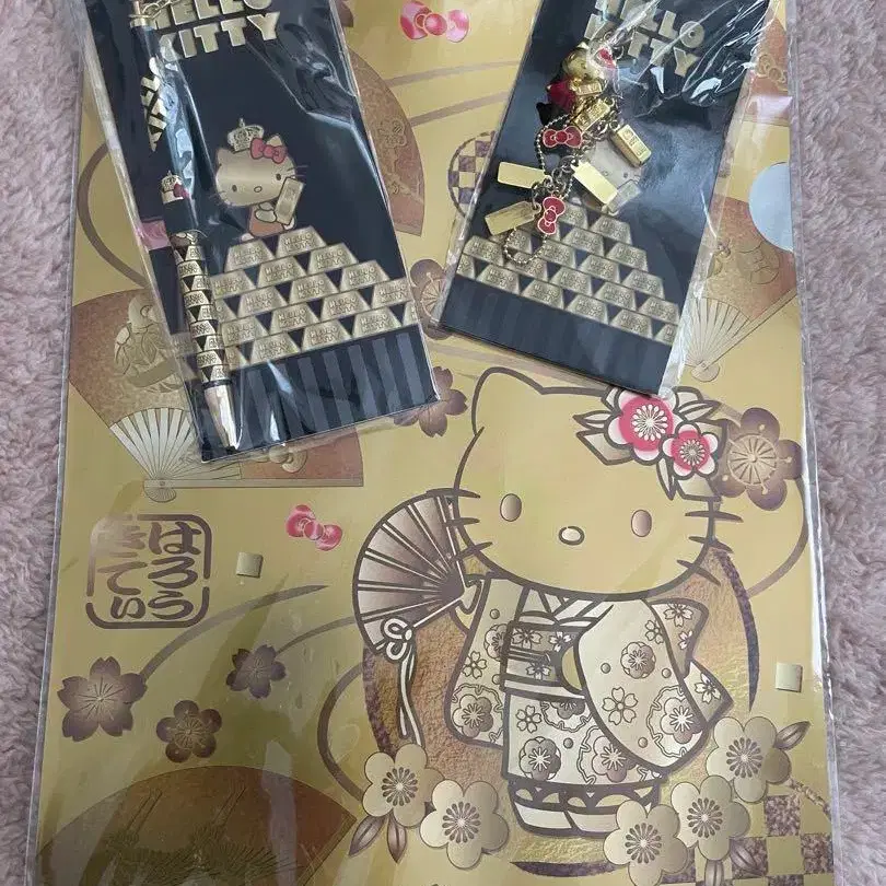 헬로키티 골든 캐슬, 일본풍 파일, 볼펜, 스트랩 세트