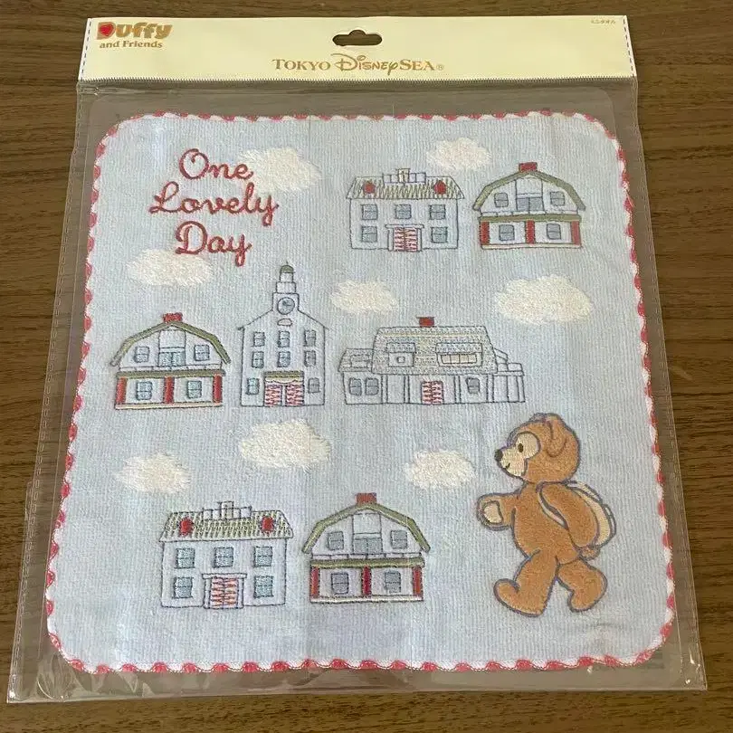 더피의 사랑스러운 디자인의 손수건, 자수가 특징입니다.