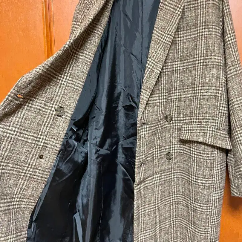 체크 무늬의 더블 브레스트 코트, 폴리에스테르 소재로 가벼운 착용감. - 색상: 체크 무늬 - 소재: 폴리에스테르 60%, 아크릴 25%, 울 5%, 기타 5%, 안감 폴리에스테르 100% - 사이즈: M (가슴둘레 88-96cm, 신장 165-175cm) 방문해 주셔서 감사합니다.