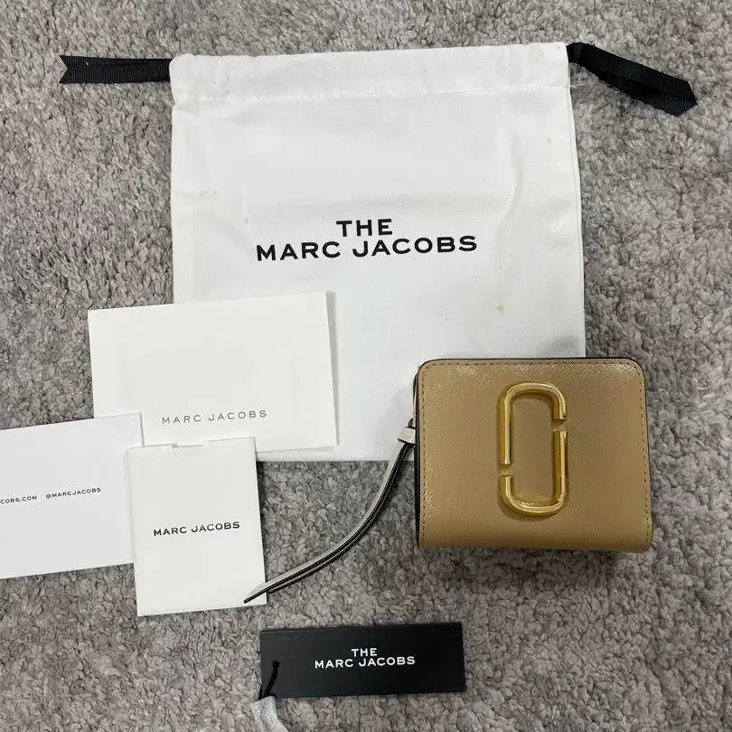 MARC JACOBS의 인기 시리즈 [ 스냅샷 ] 3단 폴더형 반지갑입니다. 차분한 베이지 컬러에 골드 J 로고가 포인트로, 고급스럽고 귀여운 디자인입니다.