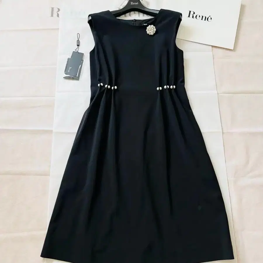 (5) 르네 블랙 슬리브리스 무릎 기장 원피스 38