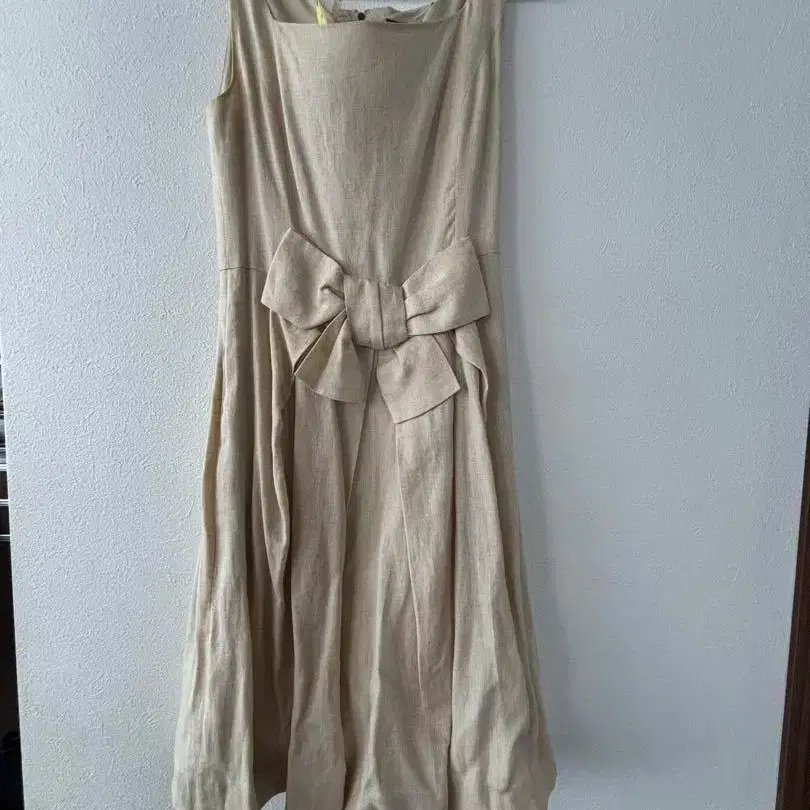 폭시 베이지 리본 포함 슬리브리스 원피스