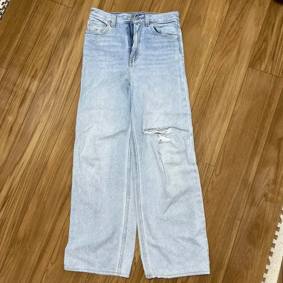 에이앤드엠 H&M 와이드 데님 팬츠 데미지 가공 블루 S 플레어