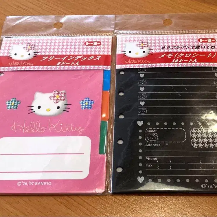 자택 보관품 미사용, 미개봉 프리 인덱스 5매 메모 블랙 시트 10매 1997년 귀중한 카오하나 키티의 6구 시트입니다!