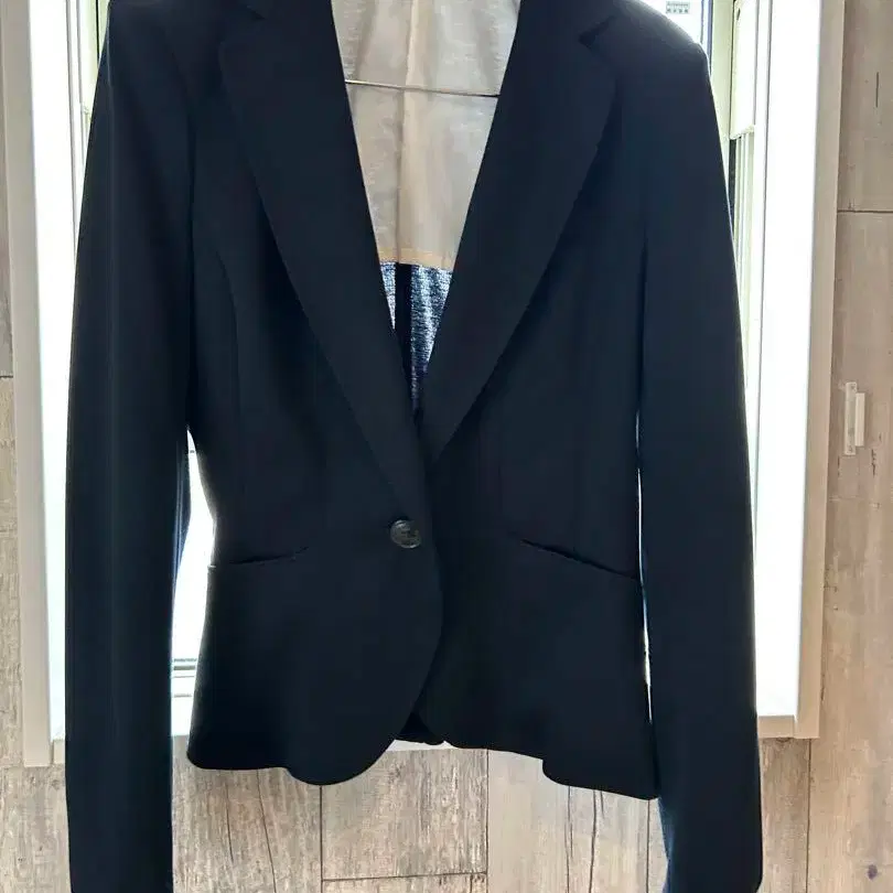 다이애나의 원 버튼 자켓입니다. 블랙 색상의 폴리 레이온 소재로 주름이 잘 생기지 않고 속건성 또한 뛰어나며, 안감이 전체적으로 들어가지 않아 조금 더워지는 이 시기에부터 가을까지 착용할 수 있습니다. 해당 상품은 집에서 한 번만 착용한 상품으로, 택은 잘라 놓았지만 거의 신상품과 다름없는 상태입니다. - 색상: 블랙 - 안감: 실크와 같은 광택이 있는 소재 - 디자인: 테일러드 자켓 방문해 주셔서 감사합니다.