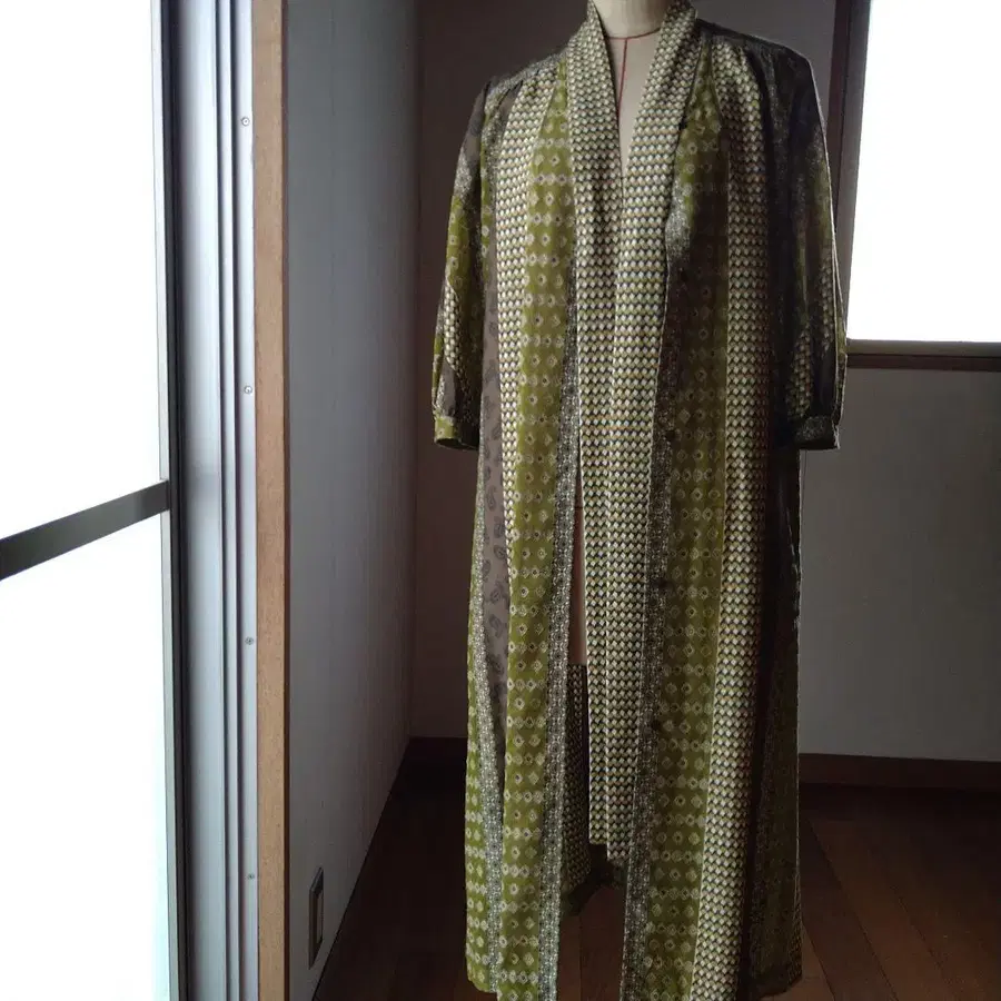 긴 스틱 타이, 백의 절개, 바이어스 소매가 포인트인 디자인입니다.