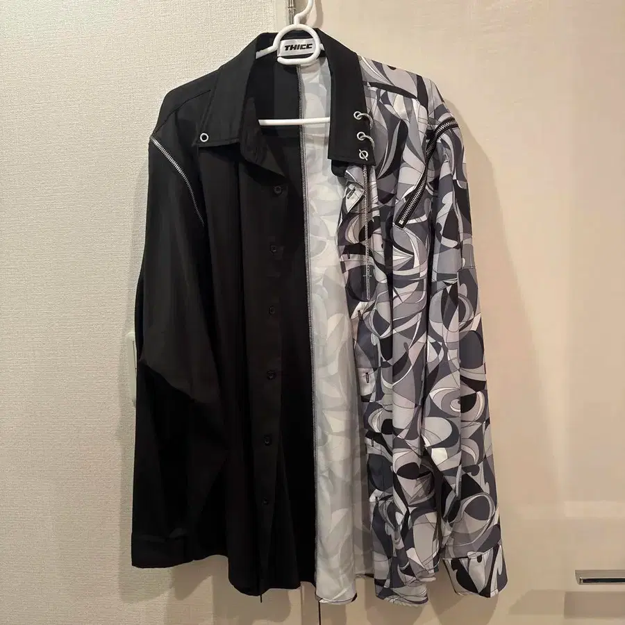 THICC 기하학 패턴 긴팔 셔츠 블랙과 화이트