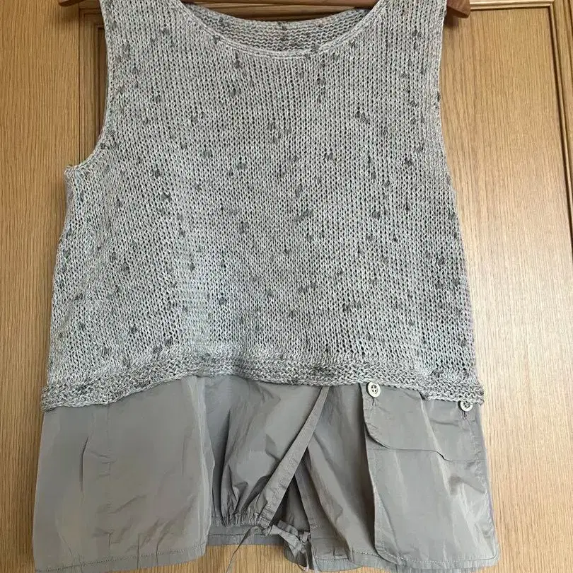 • 새상품 레이스 리본 로고 후드 슬리브리스 니트 그레이 frene