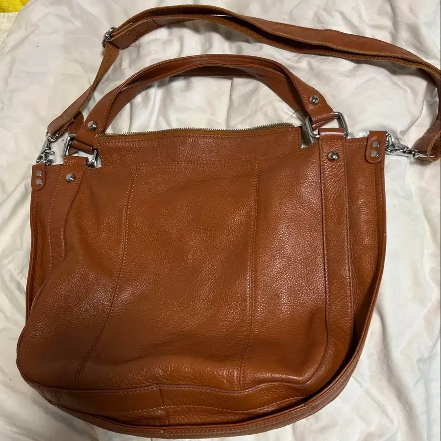 천연 가죽 숄더 백 브라운 손잡이와 숄더 2way 타입 내부 포켓 2개, 5개 상단 지퍼 사이즈 약 40×27㎝, 바닥 약 10