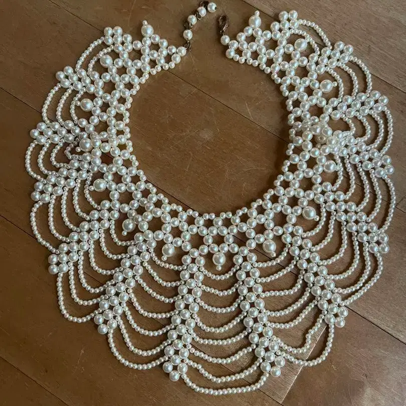 펄 초커 스타일의 목걸이입니다. 고져스합니다. 엘레강트한 펄 디자인의 초커. - 소재: 펄 - 디자인: 레이스풍 장식 - 잠금장치: 클린치식 잠금장치 - 스타일: 엘레강트 방문해 주셔서 감사합니다. 컬러···화이트 계열 흠집, 변색 등···없음