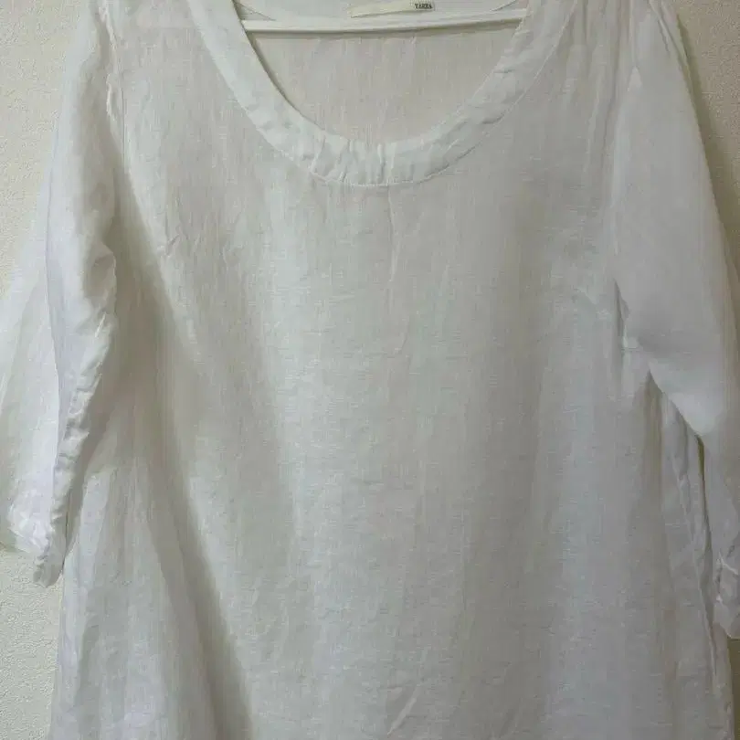 YARRA 화이트 오분 소매 라운드넥 린넨 셔츠
