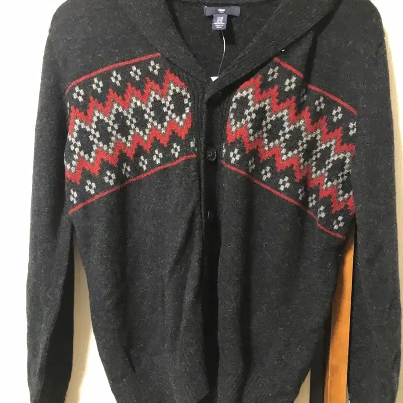 백 넘버 페어아일 패턴 울 혼방 니트 가디건 XL