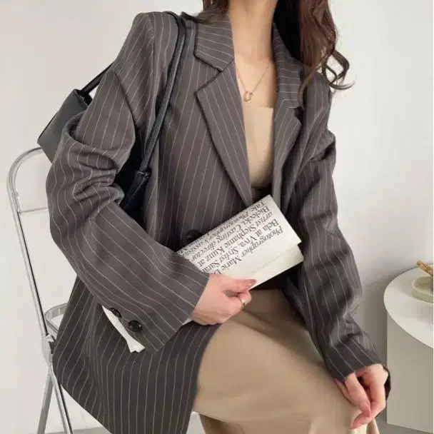 • 비즈 장식 라이트 그레이 테일러드 자켓 Darich
