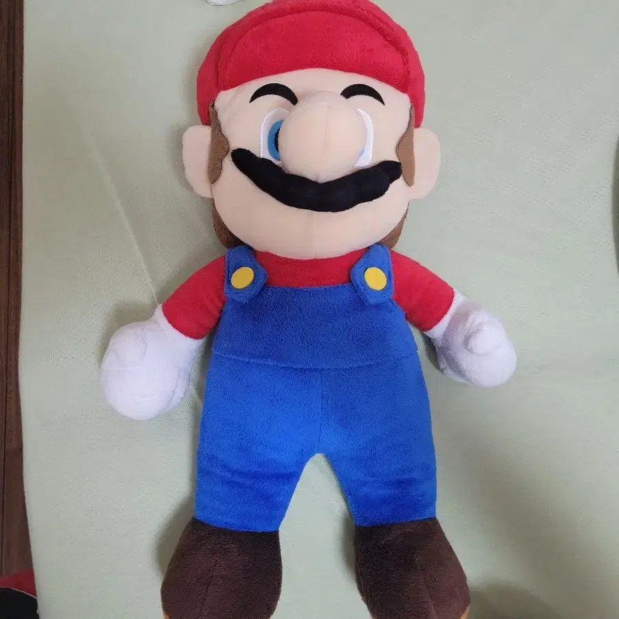 마리오 봉제 인형, 약 30cm 사이즈로 빨간색과 파란색의 색감이 특징입니다. - 캐릭터: 마리오 - 색상: 빨간색/파란색 - 소재: 봉제 인형 - 사이즈: 약 30cm - 디자인: 뒷모습이 특징적입니다. 방문해 주셔서 감사합니다.