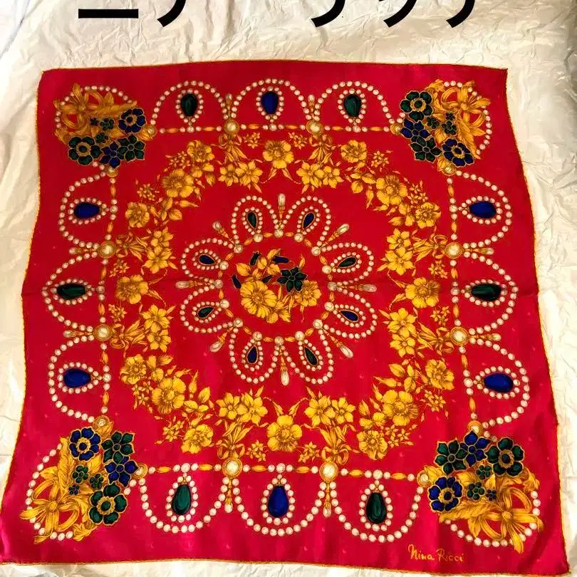• [새상품급] 니나리치 NINA RICCI 실크 대형 스카프 꽃무늬 체인