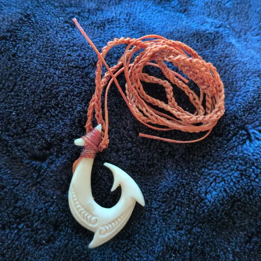 #77 후크 사이즈 세로 5cm 가로 3cm 끈 길이 64cm 조절기로 조절 가능합니다♪ 조절기 사진 2, 3번째 하나하나 수작업으로 제작♪ 온리원 액세서리♪ 구매 확정 후 잠금 장치를 설치합니다. 잠금 장치의 완성품은 2번째 사진 참고♪ 고래 뼈, 이빨만 사용했습니다. 통가산 ・・・・・・・・・・・・・・・・ 하와이, 뉴질랜드 등 폴리네시아 문화권에서 행복을 가져다주는 것으로 여겨져, 예로부터 부적으로 사랑받아 온 본 카빙. ・・・・・・・・・・・・・・・・ 고래는 바다에서 가족과 소통할 수 있기 때문에, 고래의 뼈와 이빨로 만든 본 카빙은 '낚시를 나가도 반드시 안전하게 가족의 곁으로 돌아갈 수 있다' 스피리추얼 프로텍터(부적)로 고대 폴리네시아 문화권에서 귀중한 물건으로 여겨져 왔습니다. ・・・・・・・・・・・・・・・・ 귀금속과는 또 다른 자연 소재의 자연스러운 질감과 사용할수록 변화하는 색감도 본 카빙의 매력입니다♪ ・・・・・・・・・・・・・・・・ 서핑, 낚시 등 마린 스포츠 전반, 수상 업무에 종사하시는 분부터 서핑, 비치 패션을 좋아하시는 분에게 추천합니다♪ 모든 제품이 핸드메이드로 제작되므로 후크의 크기, 로프의 길이 등이 다릅니다. 사이즈 등은 부담없이 댓글 달아주세요♪ 묶음 구매의 경우 할인도 있으므로 댓글로 알려주세요♪ #하와이안 피쉬 후크 #본 카빙 #피쉬 후크 #하와이안 목걸이 #부적 #핸드메이드 #통가 #뉴질랜드 #피쉬 후크 #피쉬 후크 목걸이 #하와이안 목걸이