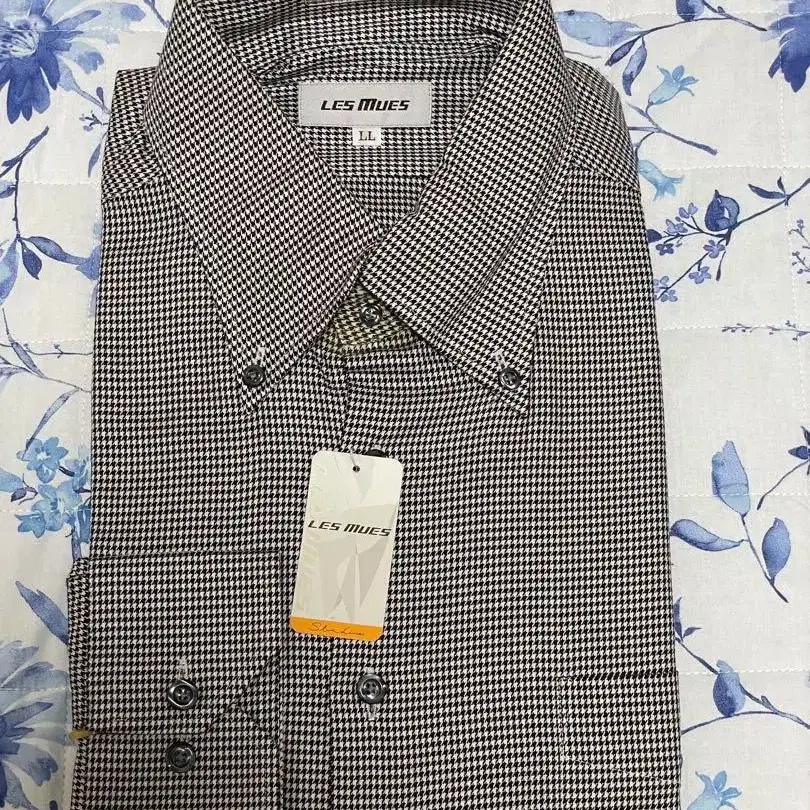 하운드 투스 무늬의 코튼 100% 긴팔 드레스 셔츠, 사이즈 LL. - 소재: 코튼 100 - 사이즈: LL (넥 43, 소매 86) - 디자인: 하운드 투스 무늬 - 컬러: 블랙, 화이트 방문해 주셔서 감사합니다.